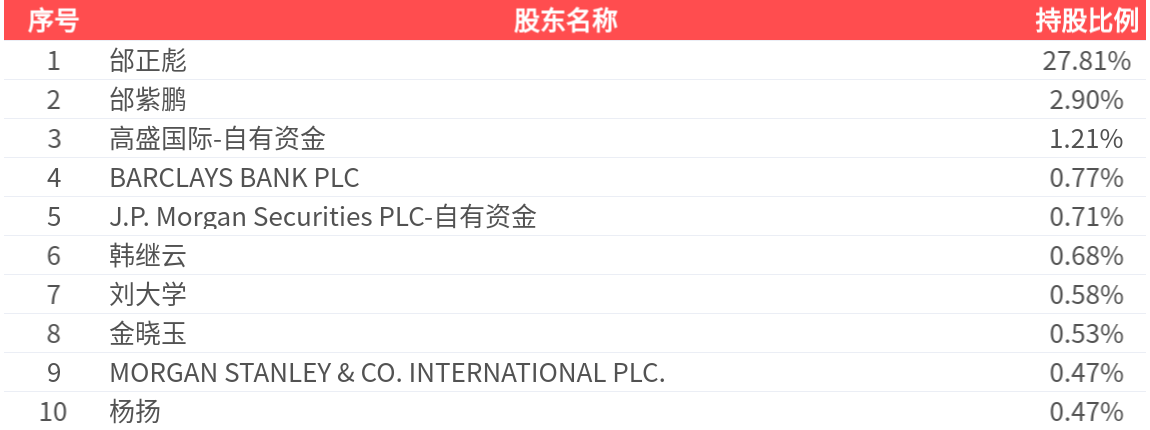 公司股东户数为11.10万户,前十大股东持股数量为1.82亿股,占总股本比例为36.13%,前十大股东持股情况如下:
