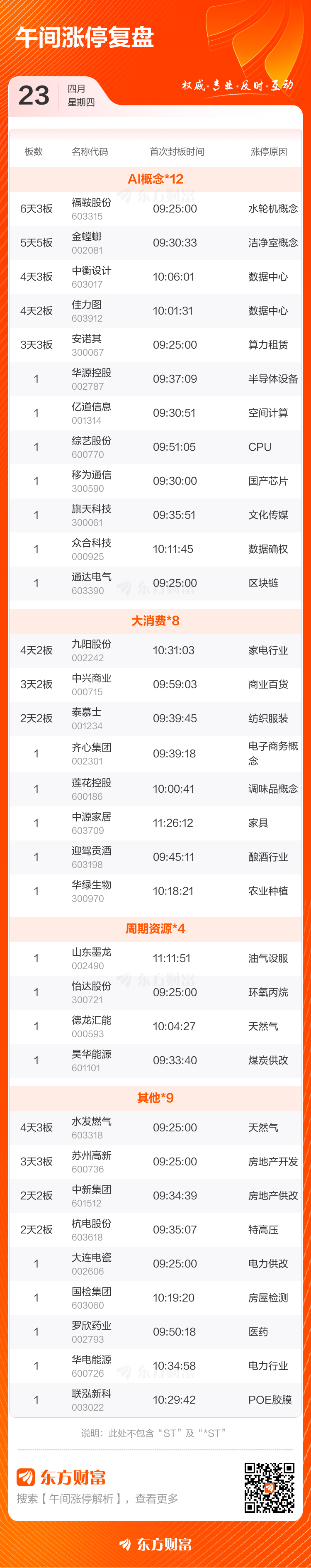 4月23日午间涨停复盘:38股涨停 福鞍股份6天3板