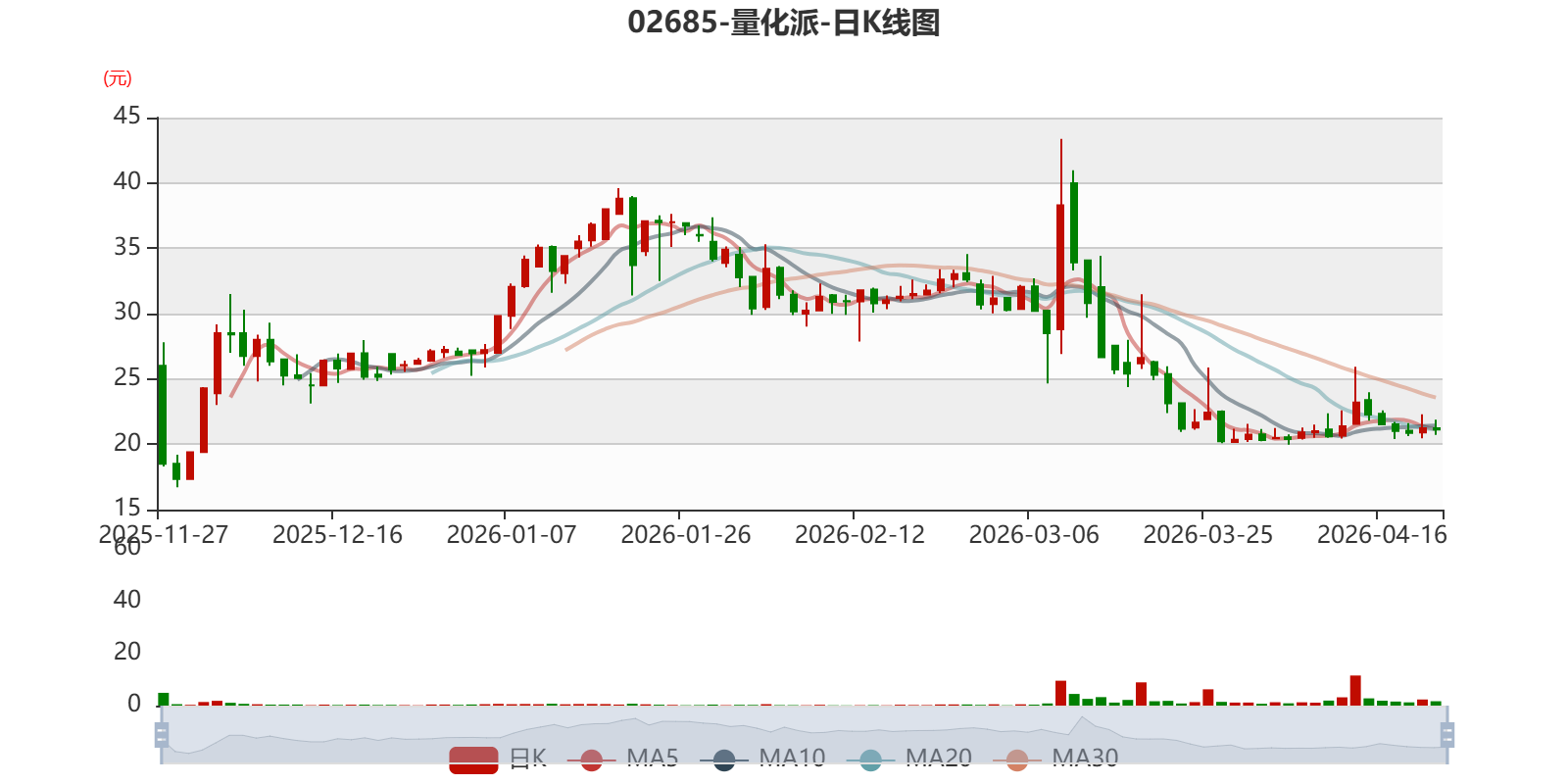 中证智能财讯量化派(02685)4月23日披露2025年度报告。报告期内,公司实现营业收入10.35亿元,同比增长4.21%;归母净利润1.95亿元,同比增长32.64%;经营活动产生的现金流量净额为1.04亿元,同比下降49.72%;据报告显示,量化派基本每股收益为0.3893元,平均净资产收益率为93.26%。
