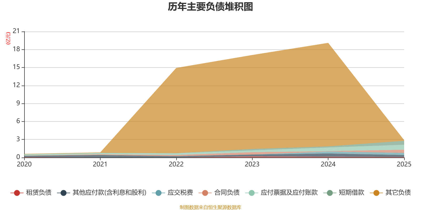 负债重大变化方面,截至2025年末,公司其他应付款(含利息和股利)较上期末减少38.81%,占公司总资产比重下降3.3个百分点;合同负债较上期末增加948.02%,占公司总资产比重上升2.8个百分点;短期借款较上期末增加265.64%,占公司总资产比重上升2.33个百分点;应交税费较上期末增加6.52%,占公司总资产比重下降1.11个百分点。