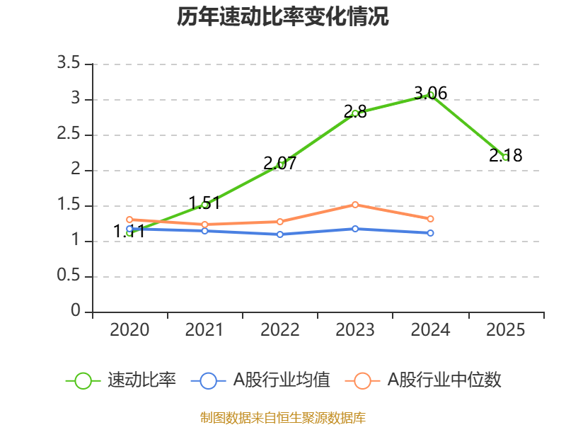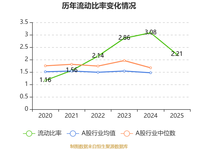 2025年,公司流动比率为2.21,速动比率为2.18。