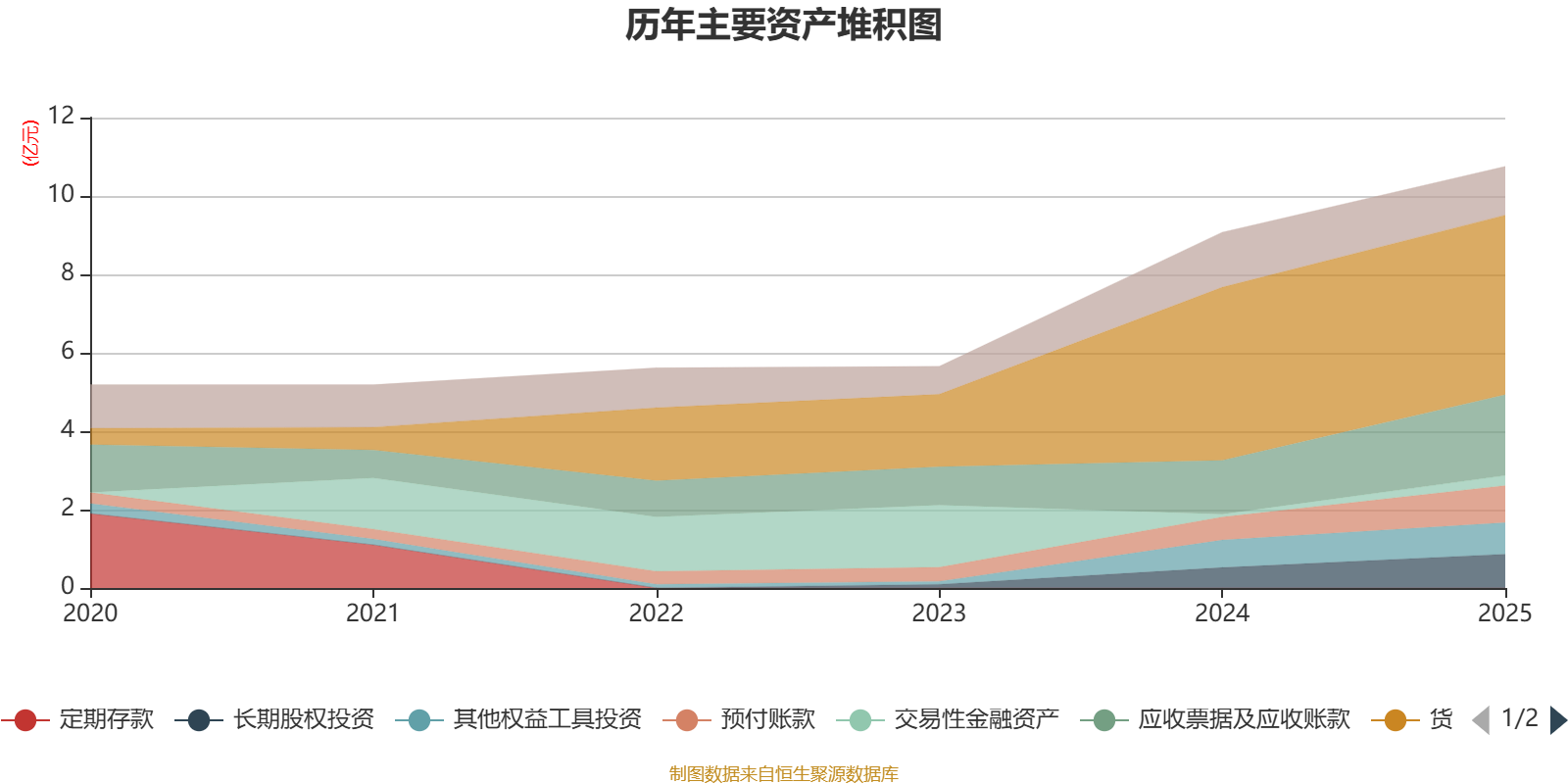 资产重大变化方面,截至2025年末,公司货币资金较上期末增加3.79%,占公司总资产比重下降6.03个百分点;应收票据及应收账款较上期末增加50.16%,占公司总资产比重上升4.04个百分点;预付账款较上期末增加60.77%,占公司总资产比重上升2.31个百分点;长期股权投资较上期末增加65.46%,占公司总资产比重上升2.28个百分点。