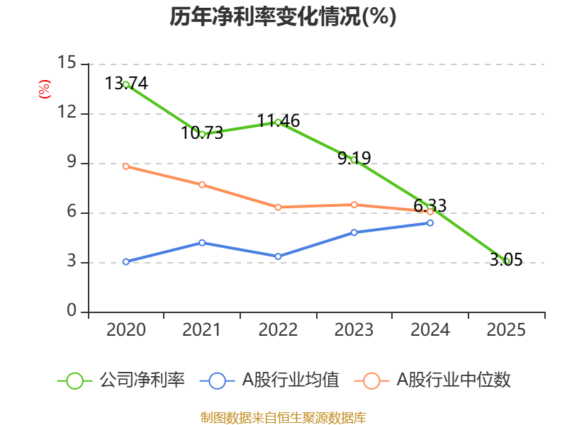 数据显示,2025年公司平均净资产收益率为3.15%,较上年同期下降5.46个百分点。