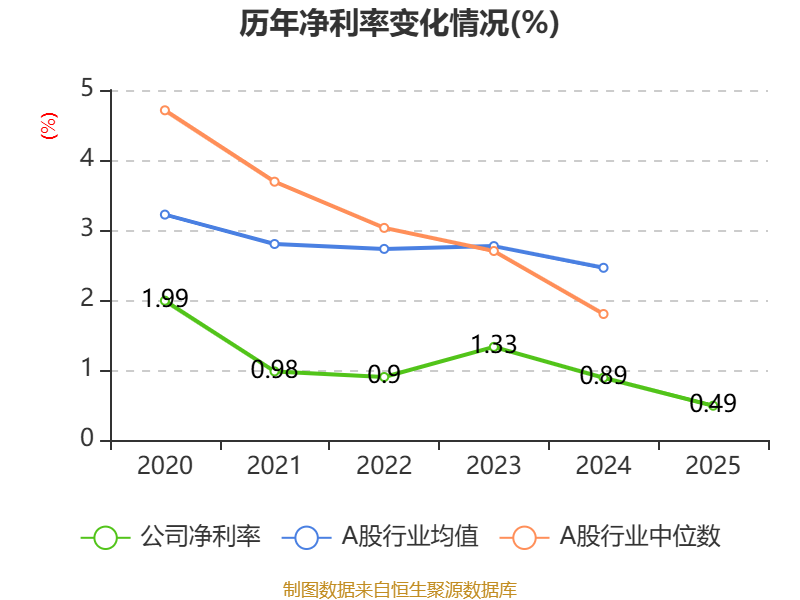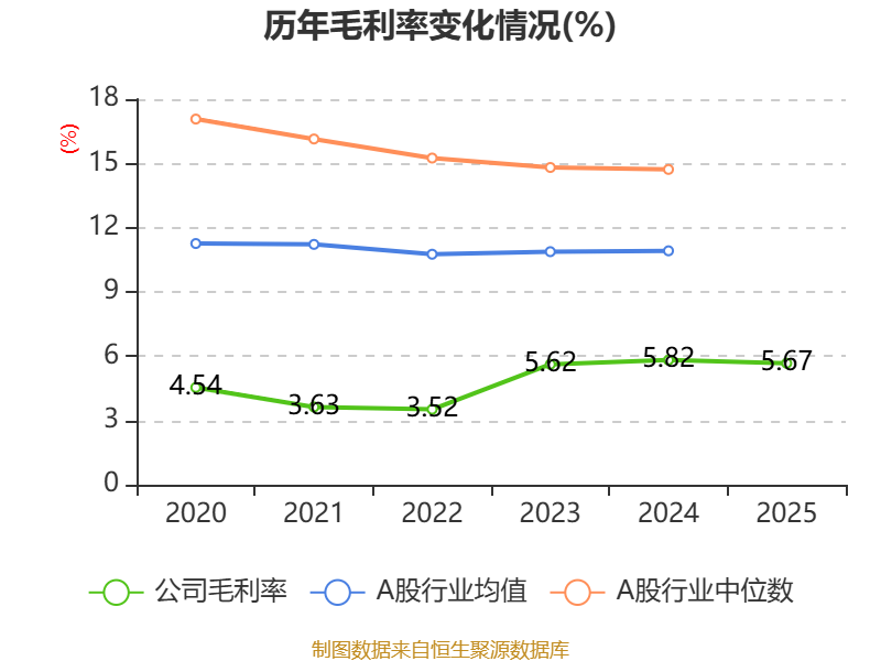 数据显示,2025年公司平均净资产收益率为5.7%,较上年同期下降2.73个百分点。