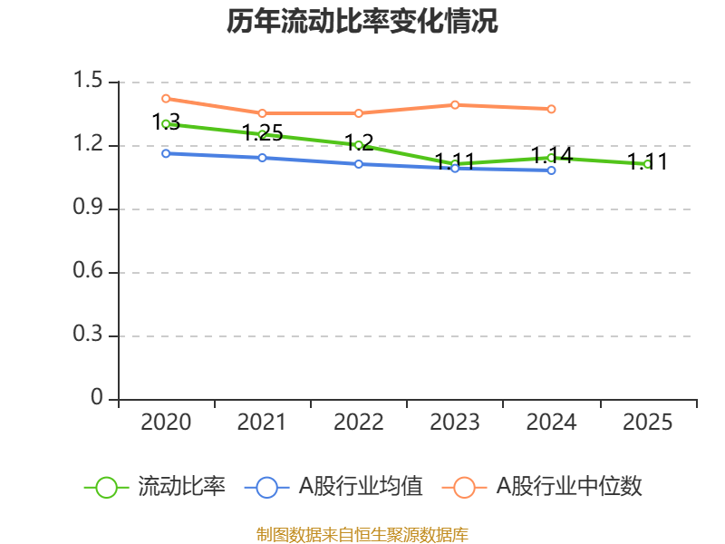 2025年,公司流动比率为1.11,速动比率为1.11。
