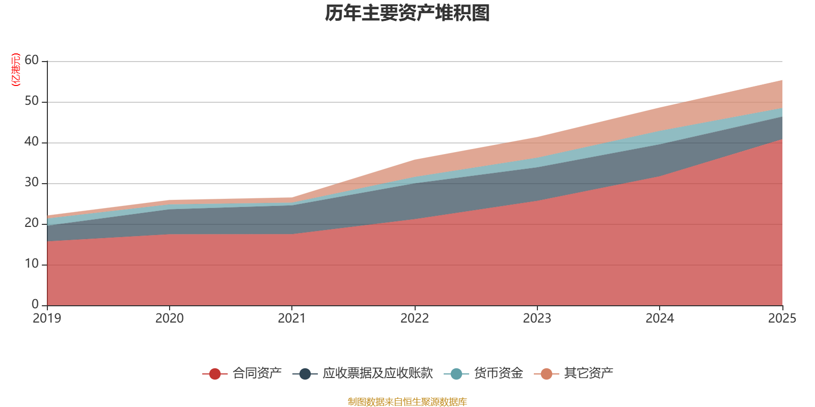 资产重大变化方面,截至2025年末,公司合同资产较上期末增加28.79%,占公司总资产比重上升8.53个百分点;应收票据及应收账款较上期末减少29.45%,占公司总资产比重下降6.15个百分点;货币资金较上期末减少36.05%,占公司总资产比重下降2.99个百分点;固定资产较上期末增加420.86%,占公司总资产比重上升1.65个百分点。
