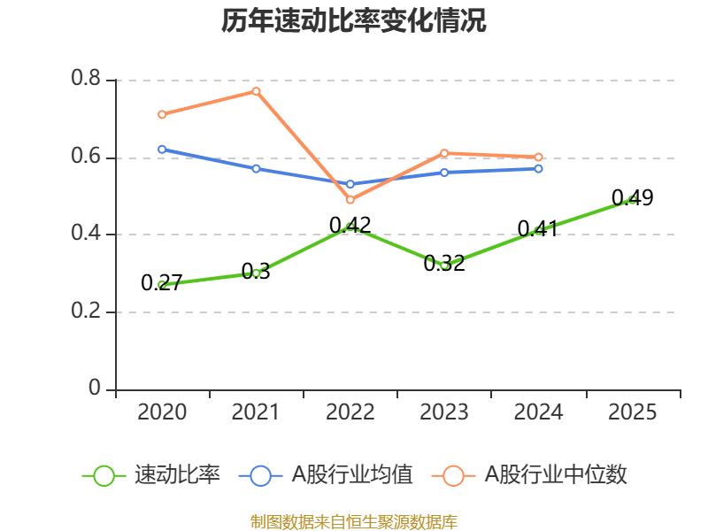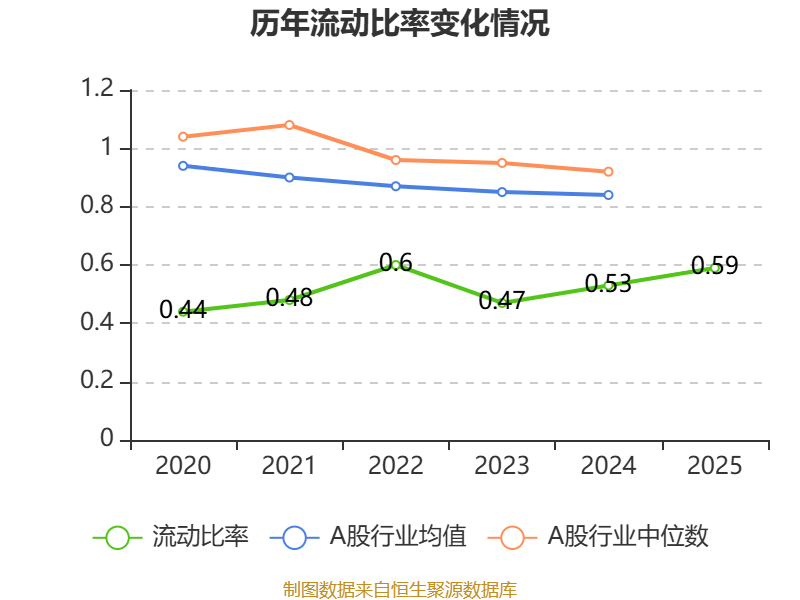 2025年,公司流动比率为0.59,速动比率为0.49。