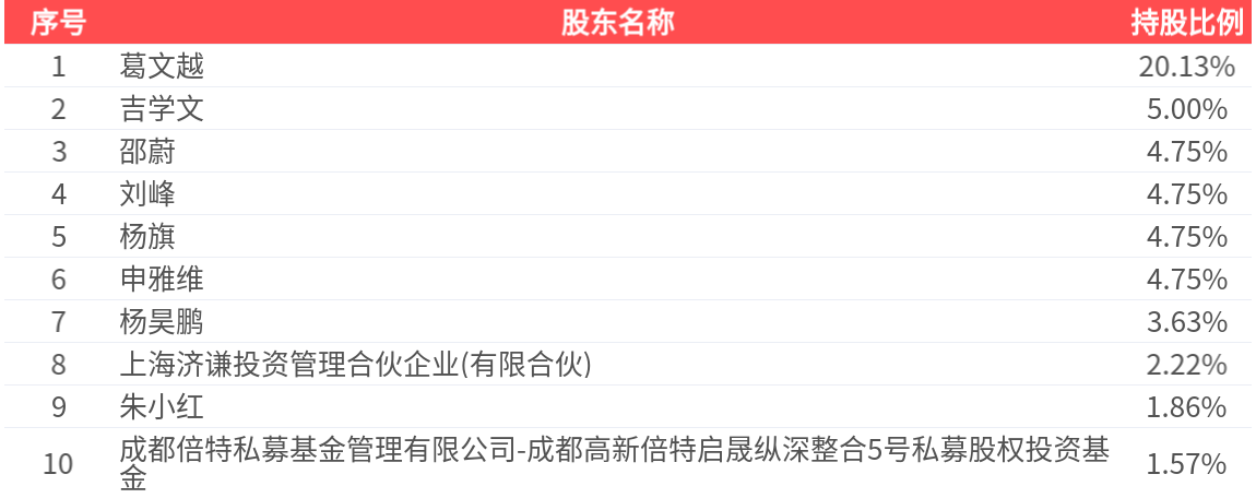 公司股东户数为4300户,前十大股东持股数量为3406.34万股,占总股本比例为53.40%,前十大股东持股情况如下: