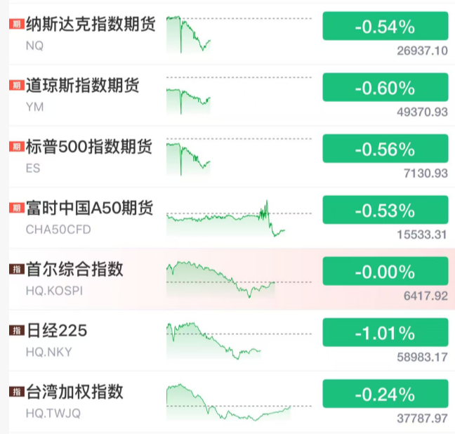 美股三大股指期货也在同一时间段直线下挫。