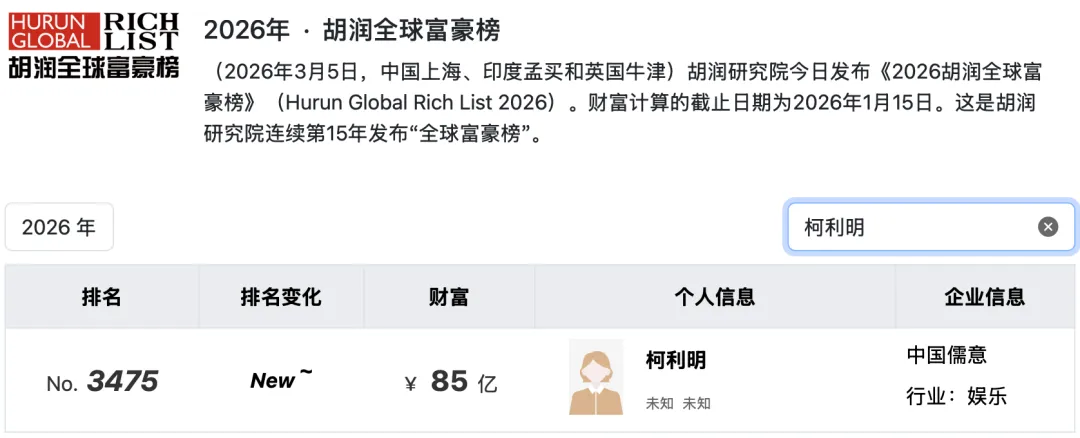 在2026年胡润全球富豪榜上,柯利明以85亿元身价名列第3475位。作为制片人出身的跨界实控人,其对流量变现效率与订阅制付费模式的逻辑在影视、游戏领域曾获得高度成功。然而,支付是一门关于安全与严谨的金融生意,当追求扩张效率与“极致变现”的资本意志进入金融牌照的实操环节,风控的水位往往会面临微妙的考验。