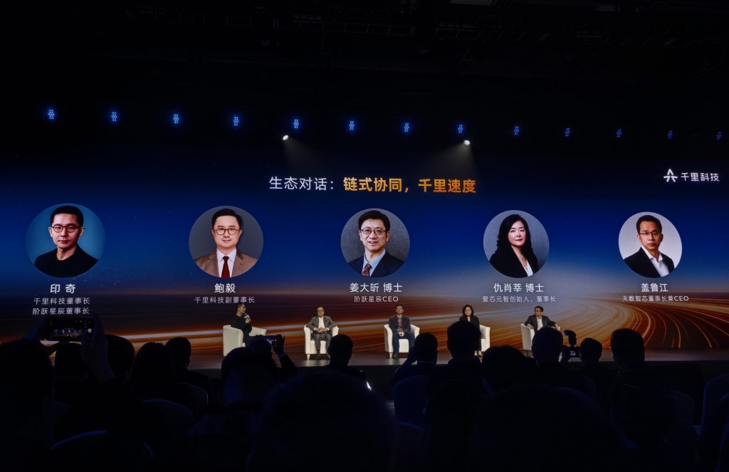 除了技术路线与商业模式,千里科技还在当晚展示了其产业链协同能力。在圆桌论坛环节,印奇与阶跃星辰CEO姜大昕,爱芯元智创始人、董事长仇肖莘,天数智芯董事长兼CEO盖鲁江等共同探讨了“链式协同”。