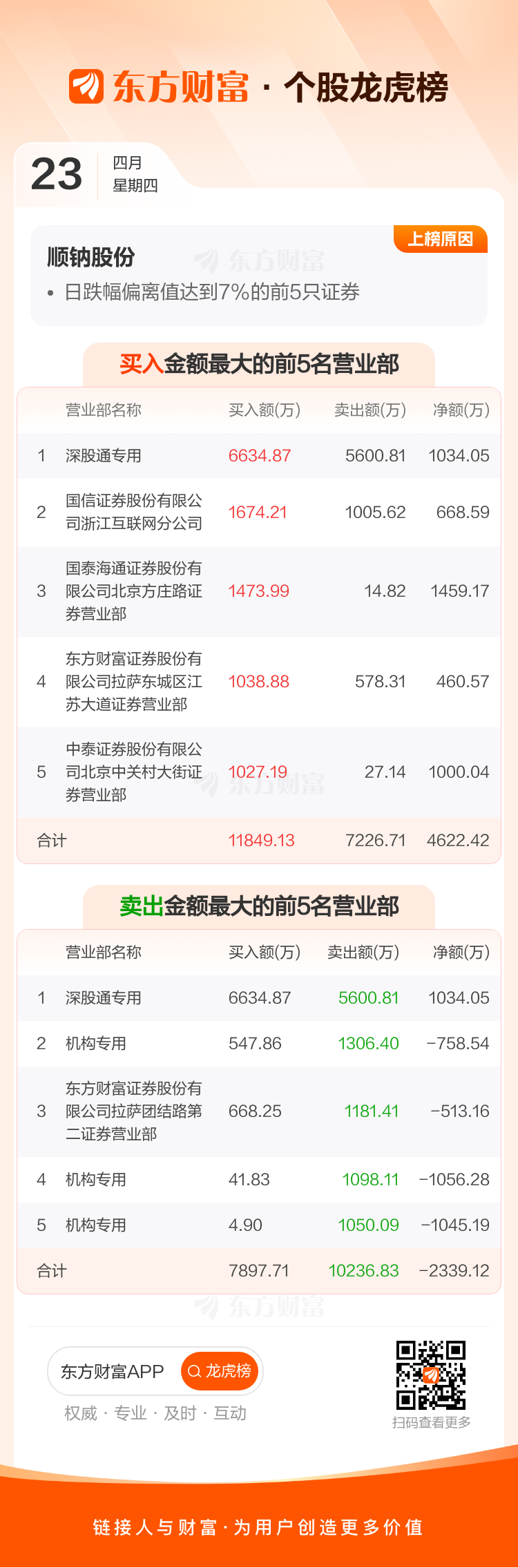 顺钠股份(000533)龙虎榜数据(04-23)