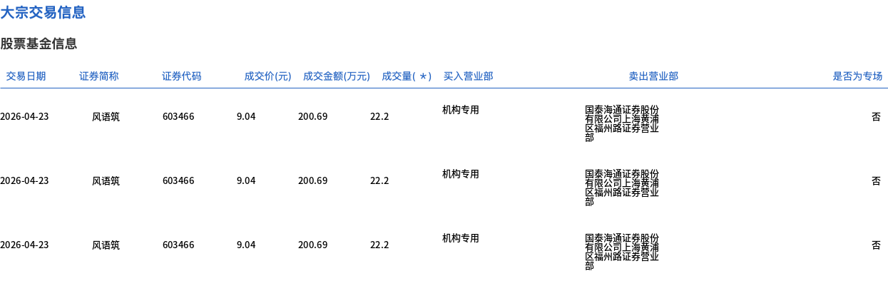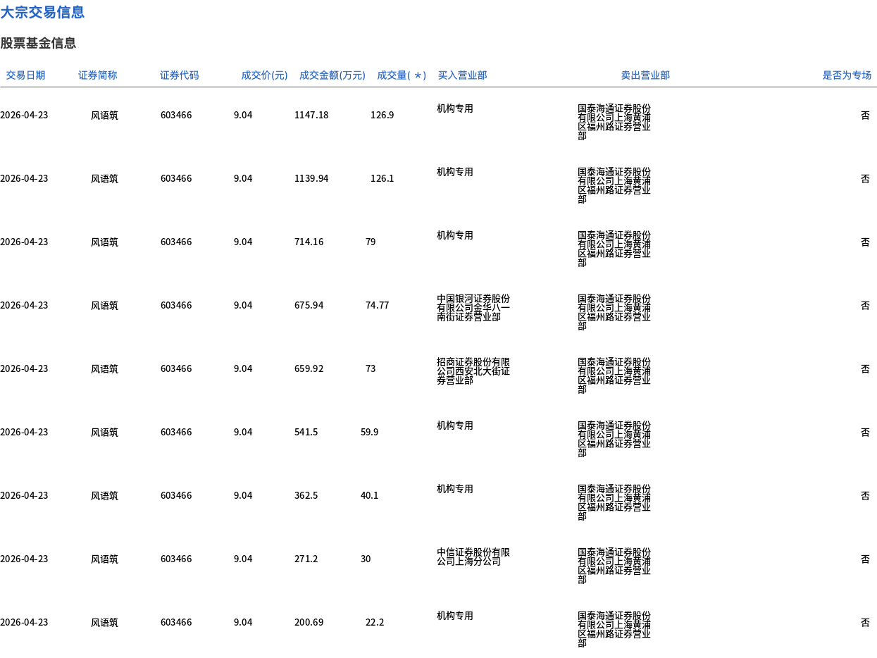 风语筑今日大宗交易折价成交698.57万股,成交额6315.1万元