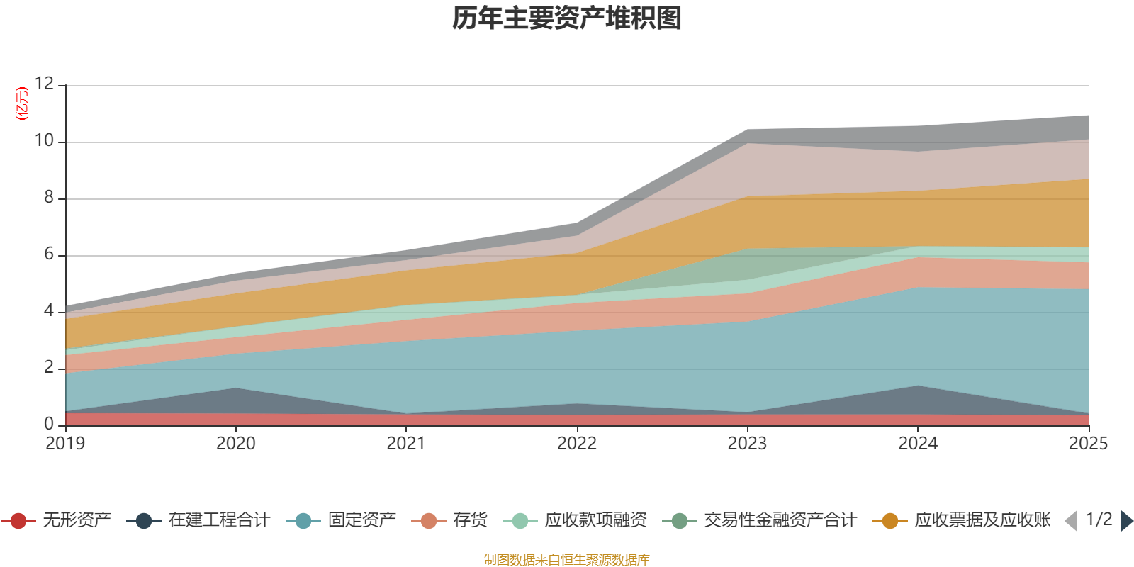 资产重大变化方面,截至2025年末,公司在建工程合计较上年末减少93.86%,占公司总资产比重下降9.08个百分点;固定资产较上年末增加26.52%,占公司总资产比重上升7.29个百分点;应收票据及应收账款较上年末增加23.38%,占公司总资产比重上升3.54个百分点;存货较上年末减少11.2%,占公司总资产比重下降1.42个百分点。