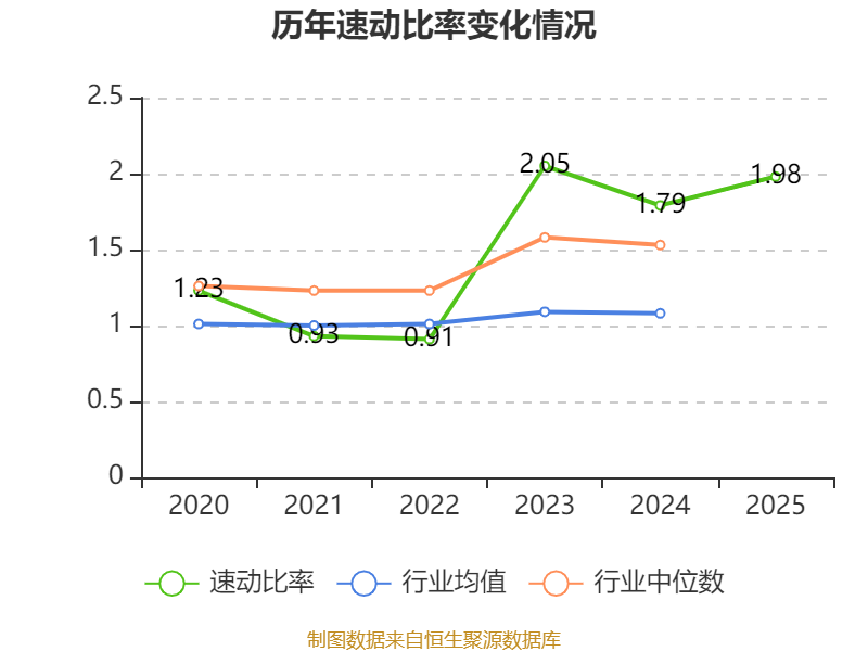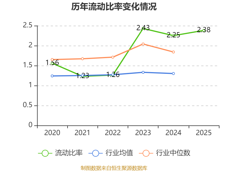2025年,公司流动比率为2.38,速动比率为1.98。
