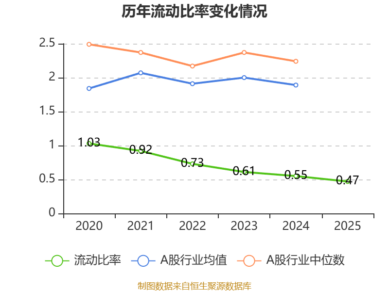 2025年,公司流动比率为0.47,速动比率为0.27。