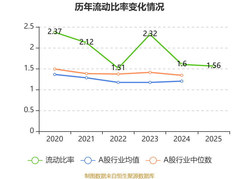2025年,公司流动比率为1.56,速动比率为1.45。