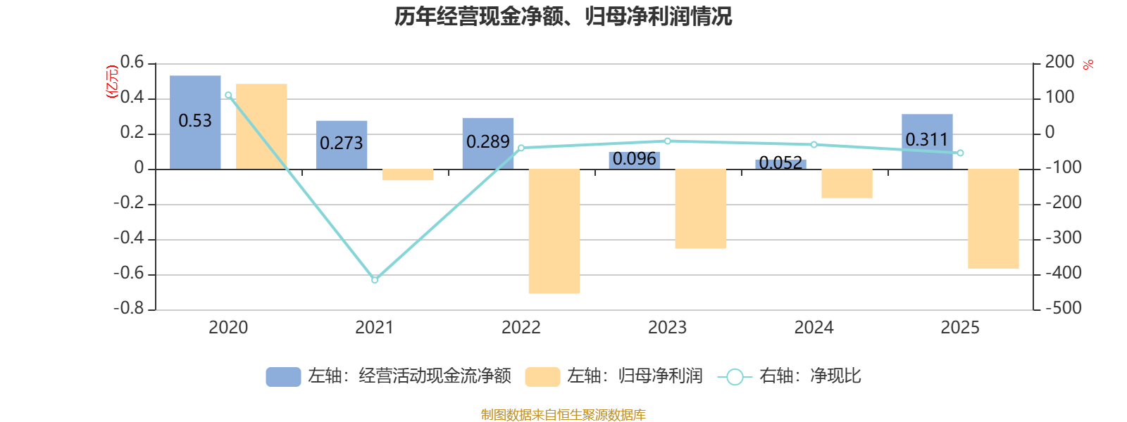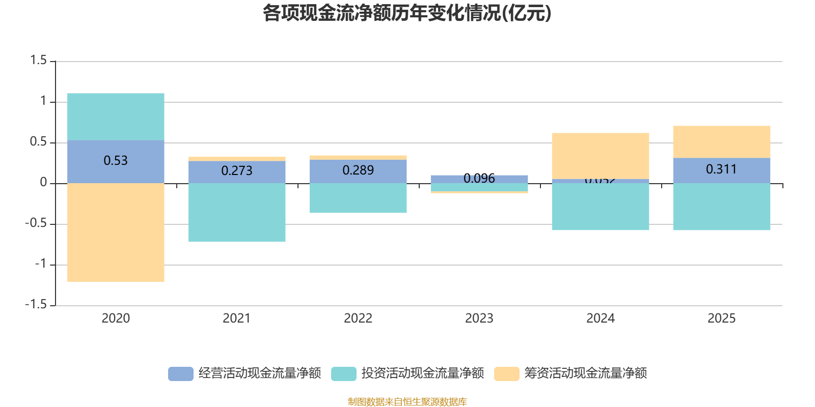 2025年,公司经营活动现金流净额为3113.4万元,同比增长497.12%;筹资活动现金流净额3934万元,同比减少1708.4万元;投资活动现金流净额-5768.3万元,上年同期为-5762.6万元。