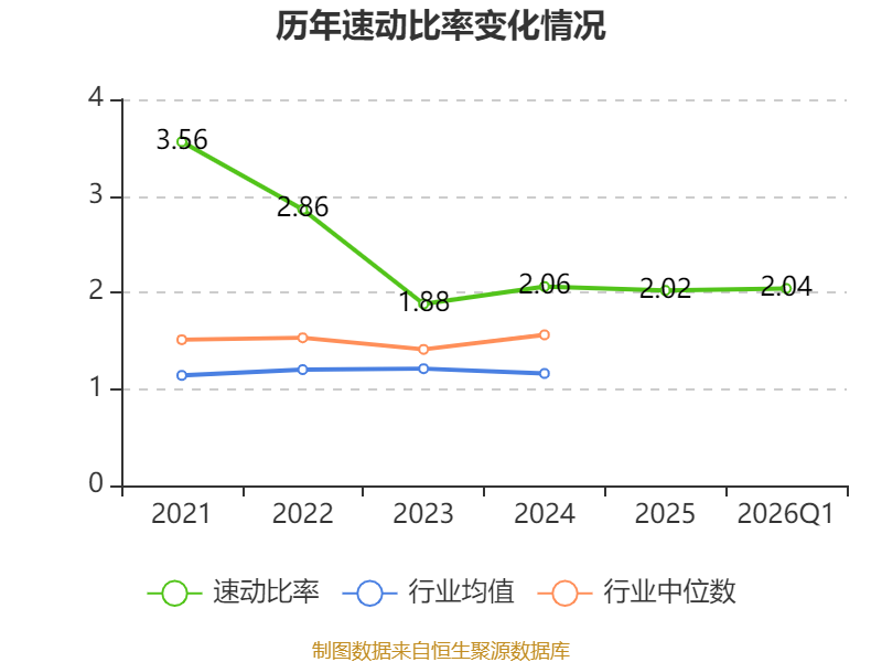 2026年第一季度,公司流动比率为2.62,速动比率为2.04。