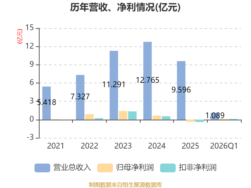 中证智能财讯龙源技术(300105)4月24日披露2026年第一季度报告。公司实现营业总收入1.09亿元,同比下降34.78%;归母净利润1215.72万元,同比下降70.56%;扣非净利润1109.85万元,同比下降72.88%;经营活动产生的现金流量净额为-6210.18万元,上年同期为-1.19亿元;报告期内,龙源技术基本每股收益为0.0236元,加权平均净资产收益率为0.65%。