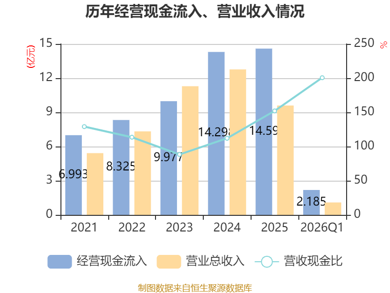 截至2026年一季度末,公司经营活动现金流净额为-6210.18万元,同比增加5643.96万元;筹资活动现金流净额0元,同比增加23.39万元;投资活动现金流净额-2.01亿元,上年同期为-215.84万元。