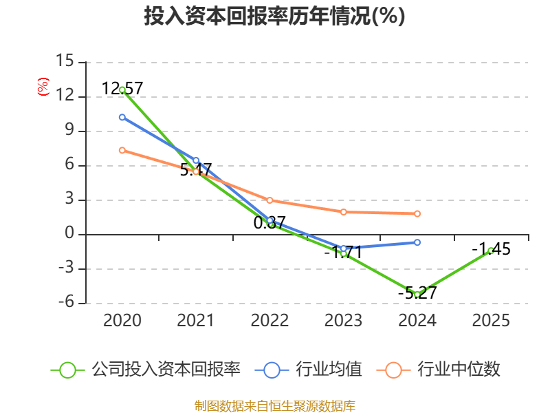 数据显示,2025年公司加权平均净资产收益率为-1.35%,较上年同期上升2.41个百分点。公司2025年投入资本回报率为-1.45%,较上年同期上升3.82个百分点。