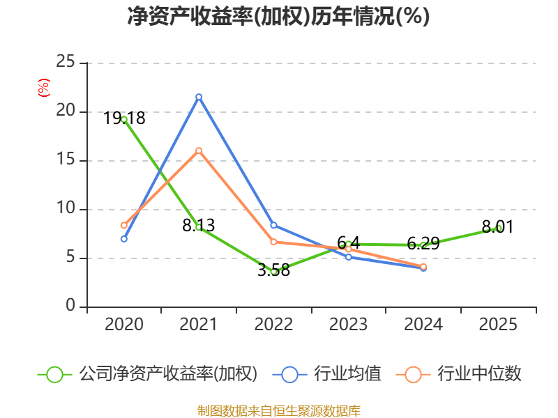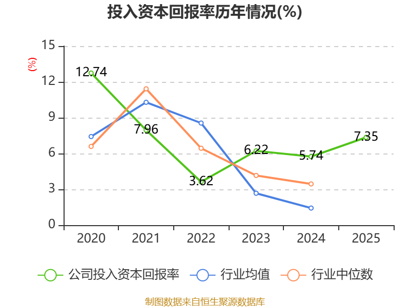 数据显示,2025年公司加权平均净资产收益率为8.01%,较上年同期上升1.72个百分点。公司2025年投入资本回报率为7.35%,较上年同期上升1.61个百分点。