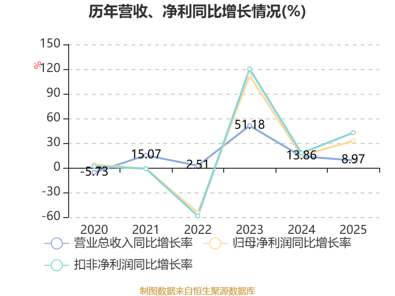 中证智能财讯宝丽迪(300905)4月24日披露2025年年度报告。2025年,公司实现营业总收入14.85亿元,同比增长8.97%;归母净利润1.51亿元,同比增长32.71%;扣非净利润1.47亿元,同比增长42.66%;经营活动产生的现金流量净额为9928.87万元,同比下降25.20%;报告期内,宝丽迪基本每股收益为0.85元,加权平均净资产收益率为8.01%。公司2025年度分配预案为:拟向全体股东每10股派现3元(含税)。
