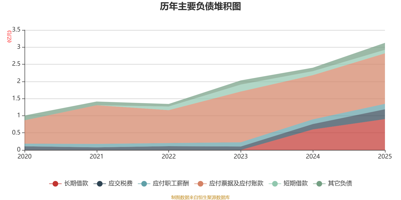 负债重大变化方面,截至2025年末,公司长期借款较上年末增加50.27%,占公司总资产比重上升1.13个百分点;应交税费较上年末增加82.49%,占公司总资产比重上升0.52个百分点;一年内到期的非流动负债较上年末增加2922.94%,占公司总资产比重上升0.42个百分点;应付票据及应付账款较上年末增加14.25%,占公司总资产比重上升0.41个百分点。