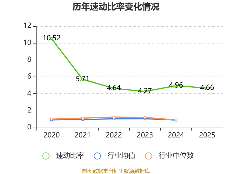 2025年,公司流动比率为5.52,速动比率为4.66。