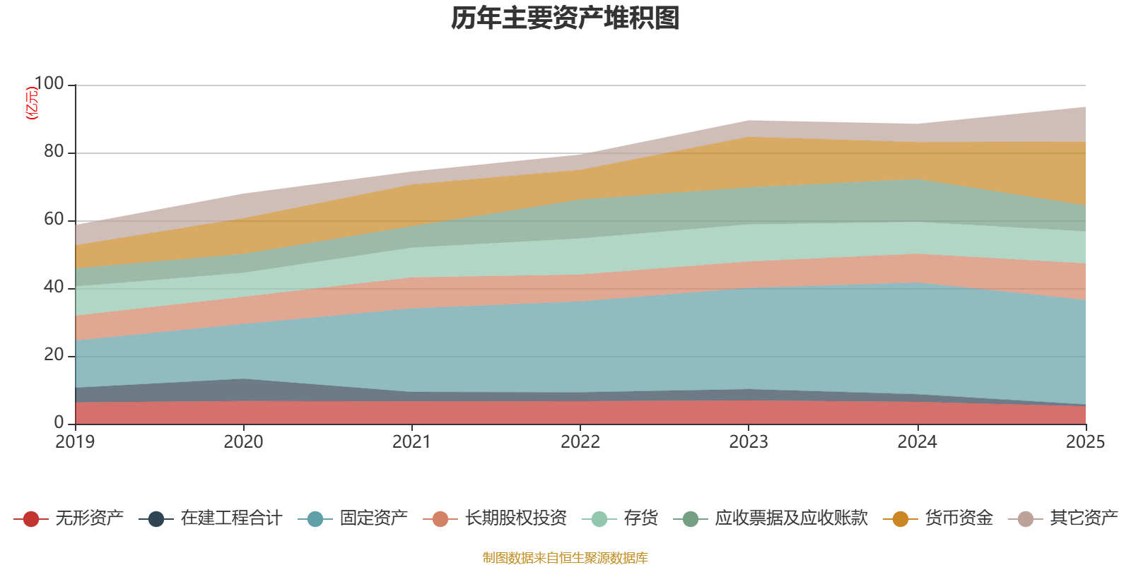 资产重大变化方面,截至2025年末,公司货币资金较上年末增加71.64%,占公司总资产比重上升7.7个百分点;应收票据及应收账款较上年末减少38.68%,占公司总资产比重下降6个百分点;固定资产较上年末减少6.38%,占公司总资产比重下降4.25个百分点;交易性金融资产合计占公司总资产的3.76%,上年末为0。