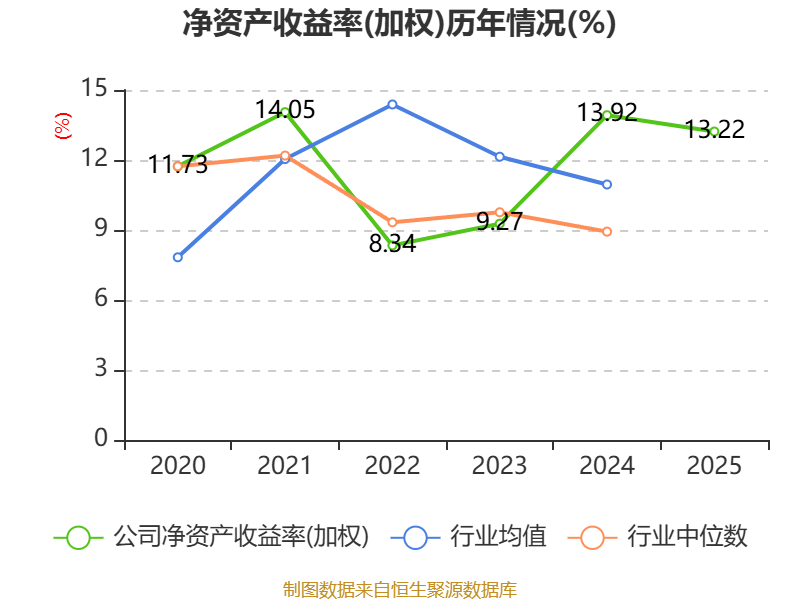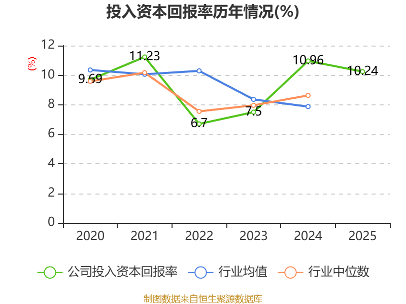 数据显示,2025年公司加权平均净资产收益率为13.22%,较上年同期下降0.7个百分点。公司2025年投入资本回报率为10.24%,较上年同期下降0.72个百分点。