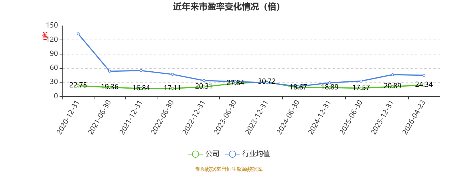 以4月23日收盘价计算,朗迪集团目前市盈率(TTM)约为24.34倍,市净率(LF)约3.07倍,市销率(TTM)约2.37倍。