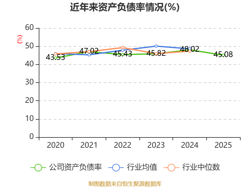负债重大变化方面,截至2025年末,公司应付票据及应付账款较上年末减少16.5%,占公司总资产比重下降5.16个百分点;长期借款较上年末增加86.48%,占公司总资产比重上升3.22个百分点;一年内到期的非流动负债较上年末减少25.8%,占公司总资产比重下降1.74个百分点;短期借款较上年末增加17.39%,占公司总资产比重上升0.76个百分点。