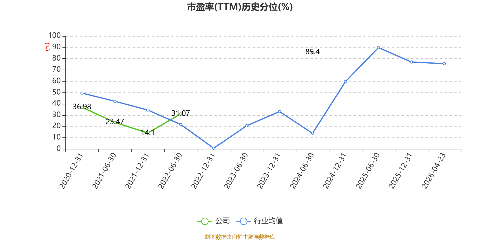 以4月23日收盘价计算,威派格目前市盈率(TTM)约为-20.87倍,市净率(LF)约1.68倍,市销率(TTM)约2.75倍。