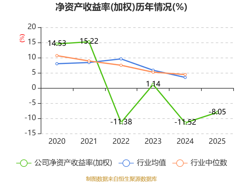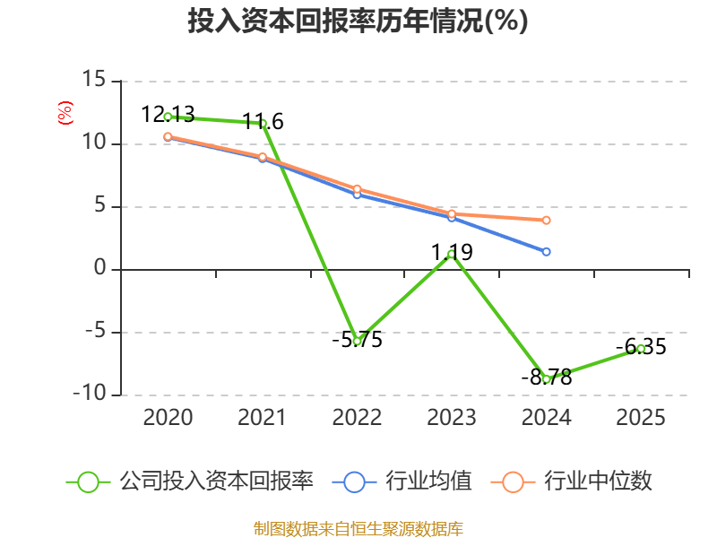 数据显示,2025年公司加权平均净资产收益率为-8.05%,较上年同期上升3.47个百分点。公司2025年投入资本回报率为-6.35%,较上年同期上升2.43个百分点。