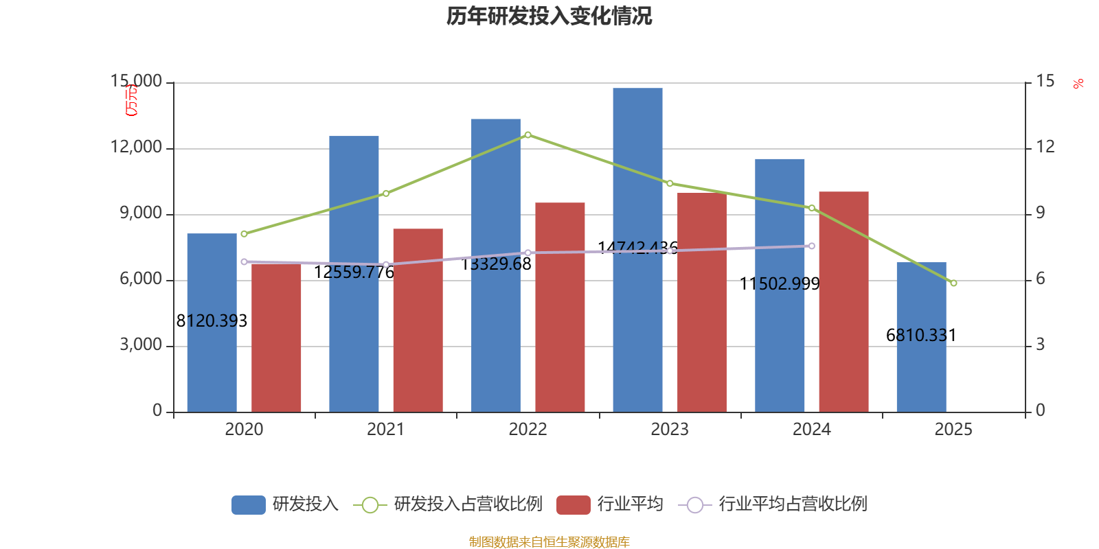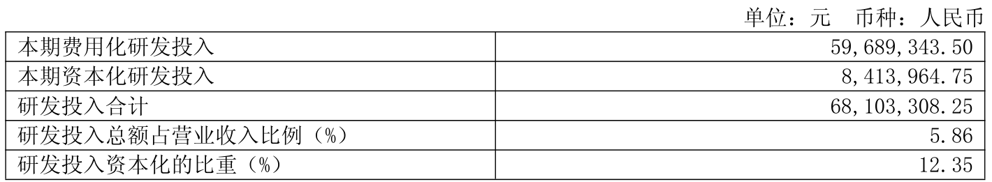 2025年全年,公司研发投入金额为6810.33万元,同比下降40.8%;研发投入占营业收入比例为5.86%,相比上年同期下降3.42个百分点。此外,公司全年研发投入资本化率为12.35%。