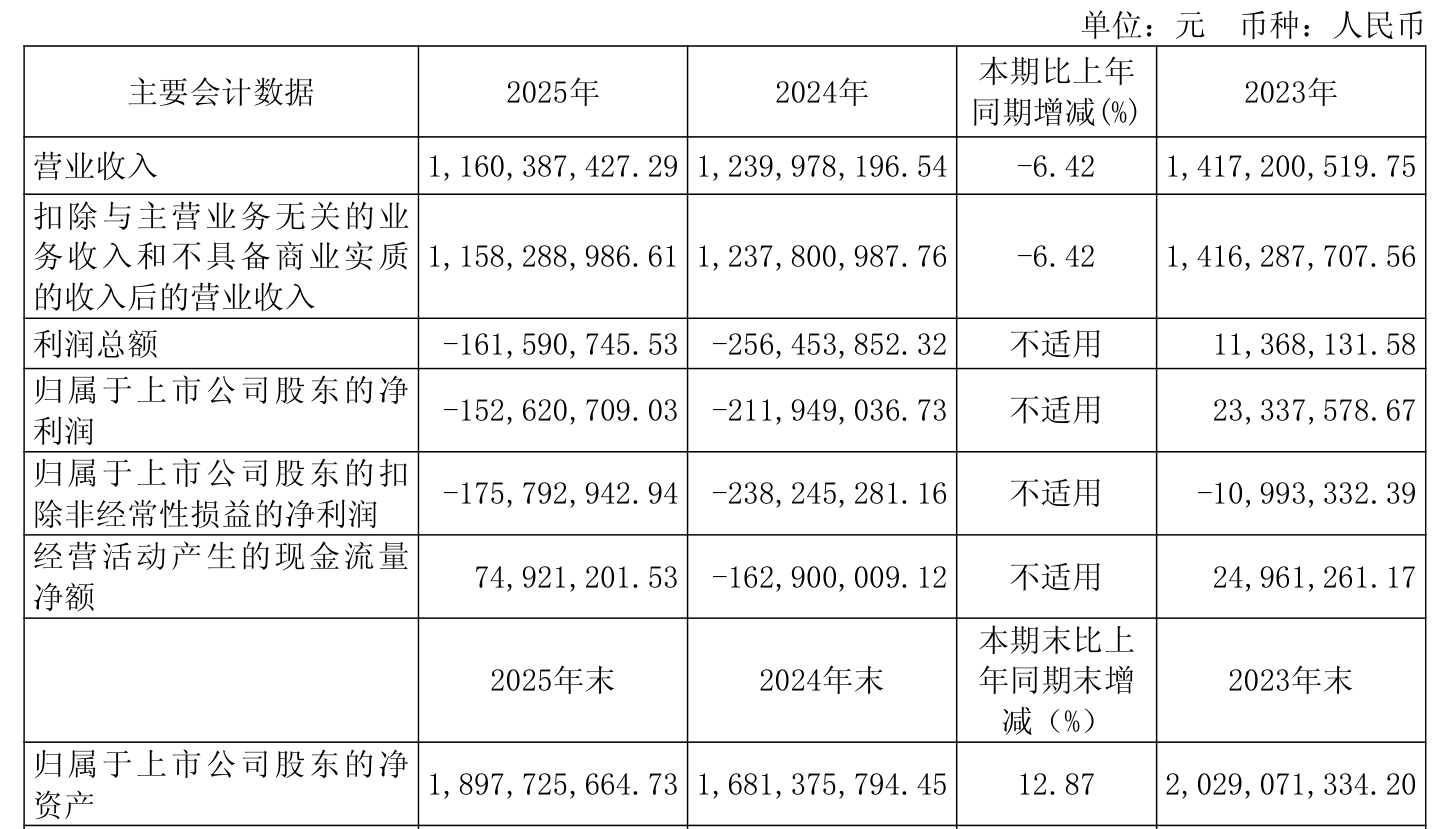 中证智能财讯威派格(603956)4月24日披露2025年年度报告。2025年,公司实现营业总收入11.6亿元,同比下降6.42%;归母净利润亏损1.53亿元,上年同期亏损2.12亿元;扣非净利润亏损1.76亿元,上年同期亏损2.38亿元;经营活动产生的现金流量净额为7492.12万元,上年同期为-1.63亿元;报告期内,威派格基本每股收益为-0.28元,加权平均净资产收益率为-8.05%。
