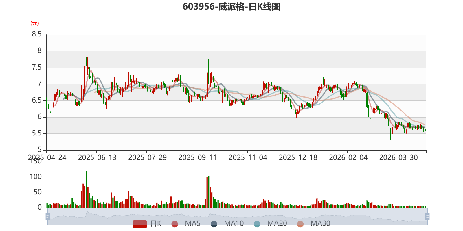 值得注意的是,中登公司数据显示,截至2026年4月17日,威派格10.42%股份处于质押状态。年报显示,第一大股东李纪玺质押6108万股公司股份,占其全部持股的28.18%。
