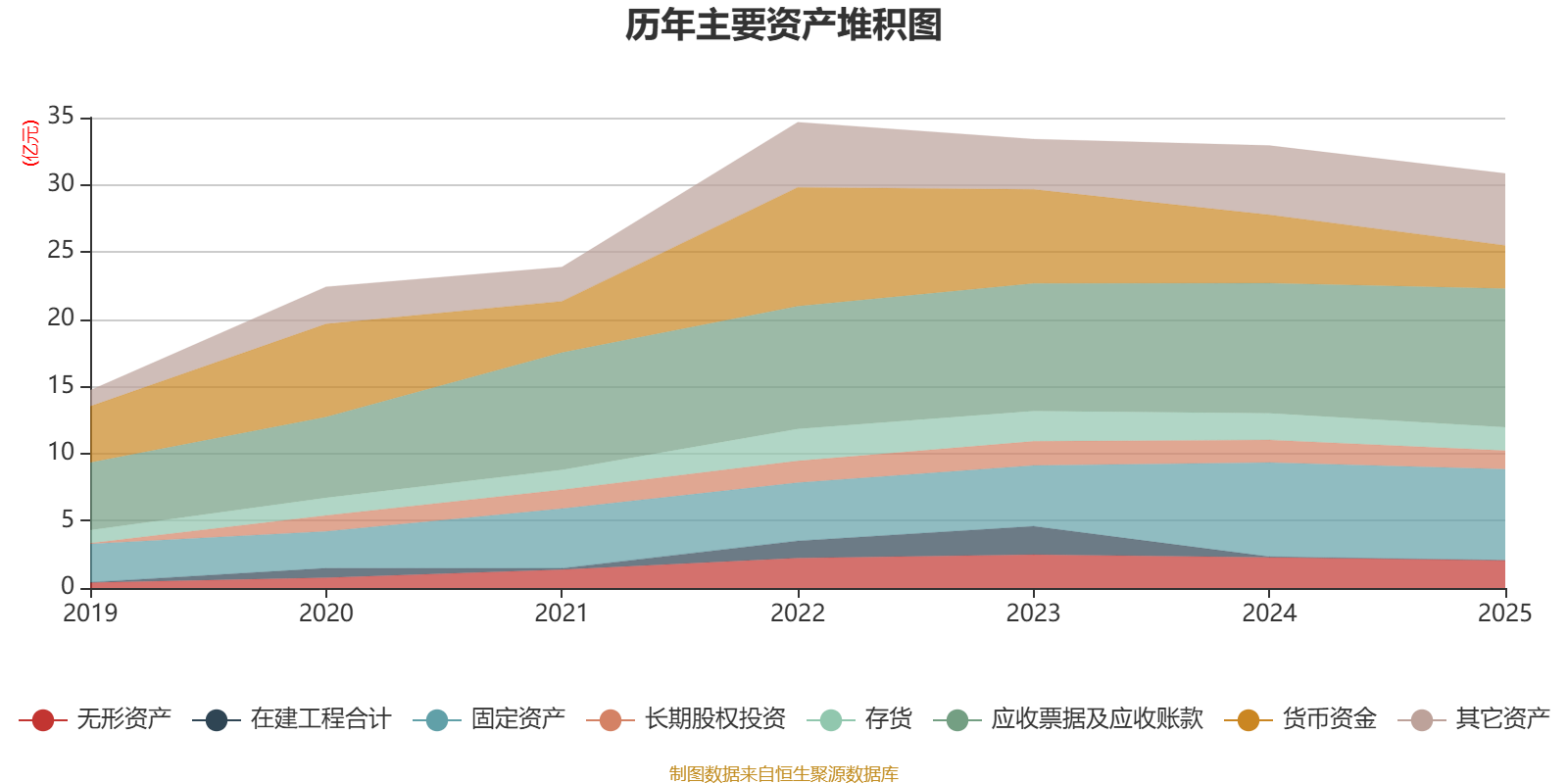 资产重大变化方面,截至2025年末,公司货币资金较上年末减少36.62%,占公司总资产比重下降4.99个百分点;应收票据及应收账款较上年末增加6.55%,占公司总资产比重上升4.04个百分点;交易性金融资产合计较上年末增加176.51%,占公司总资产比重上升2.44个百分点;固定资产较上年末减少3.36%,占公司总资产比重上升0.67个百分点。