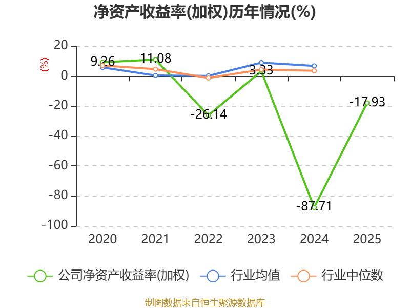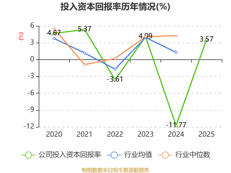 数据显示,2025年公司加权平均净资产收益率为-17.93%,较上年同期上升69.78个百分点。公司2025年投入资本回报率为3.57%,较上年同期上升15.34个百分点。