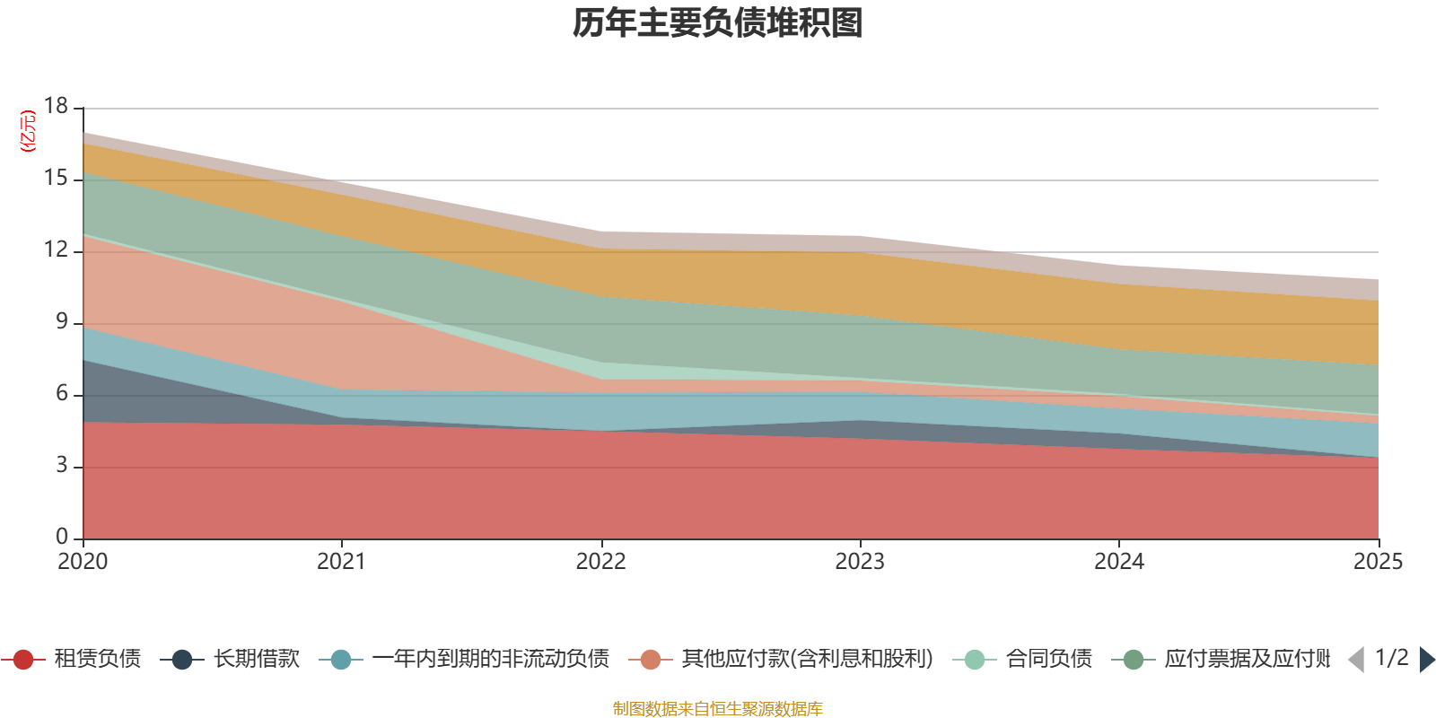 负债重大变化方面,截至2025年末,公司长期借款较上年末减少96.73%,占公司总资产比重下降5个百分点;一年内到期的非流动负债较上年末增加36.38%,占公司总资产比重上升3.75个百分点;应付票据及应付账款较上年末增加9.82%,占公司总资产比重上升2.51个百分点;其他应付款(含利息和股利)较上年末减少38.55%,占公司总资产比重下降1.42个百分点。