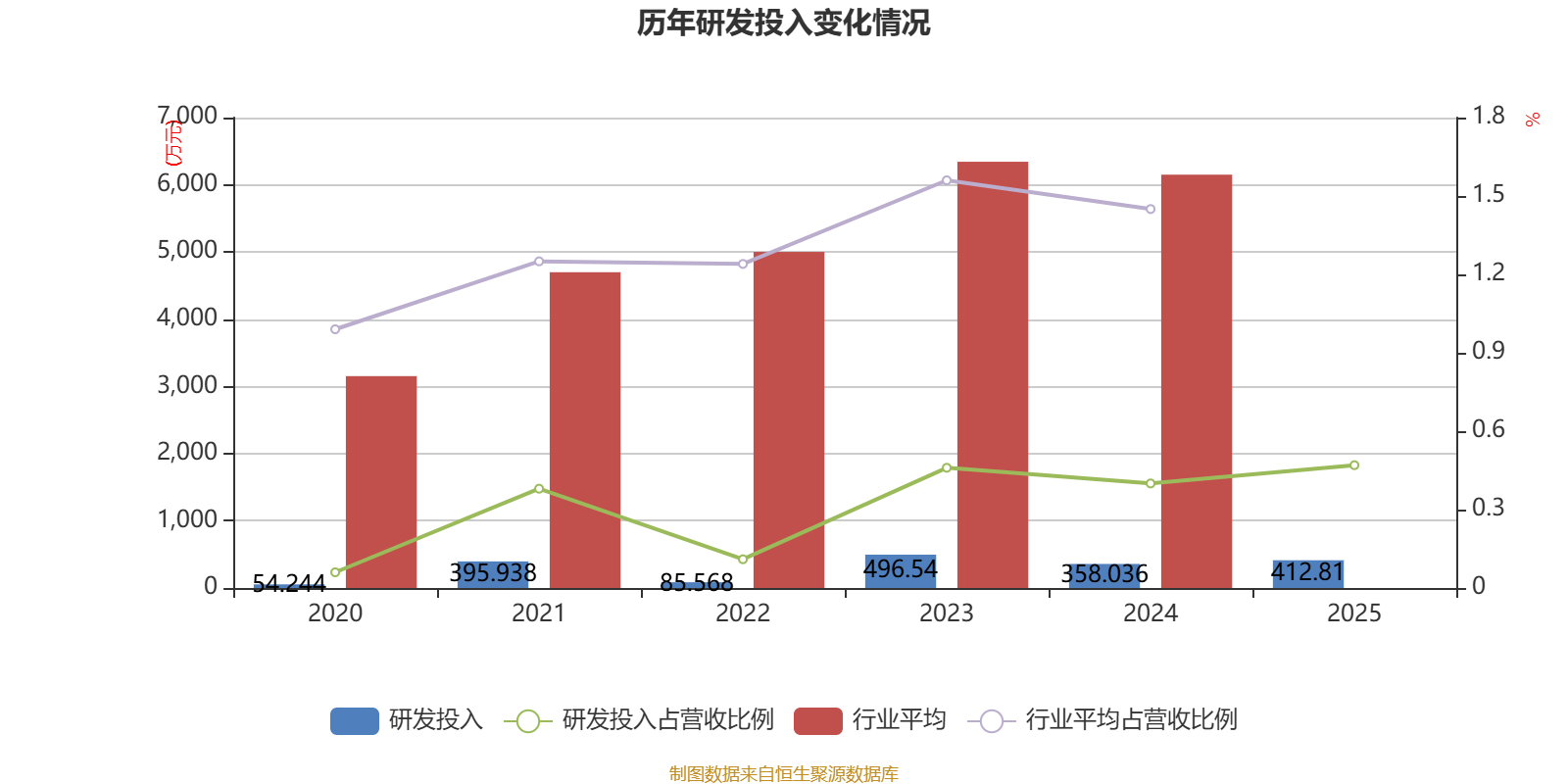 2025年全年,公司研发投入金额为412.81万元,同比增长15.3%;研发投入占营业收入比例为0.47%,相比上年同期上升0.07个百分点。此外,公司全年研发投入资本化率为0%。