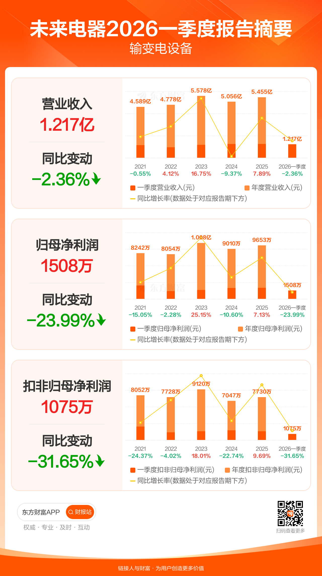 图解财报:未来电器一季度归母净利润1507.97万元,同比减少23.99%