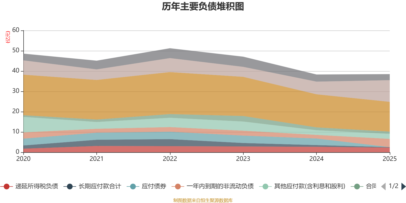 负债重大变化方面,截至2025年末,公司短期借款较上年末增加70.62%,占公司总资产比重上升5.76个百分点;应付债券较上年末减少100%,占公司总资产比重下降3.93个百分点;一年内到期的非流动负债较上年末增加129.03%,占公司总资产比重上升2.92个百分点;应付票据及应付账款较上年末减少10%,占公司总资产比重下降1.42个百分点。