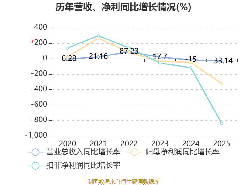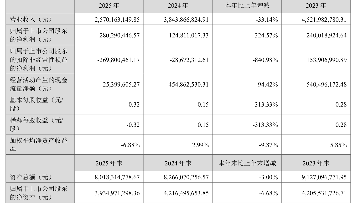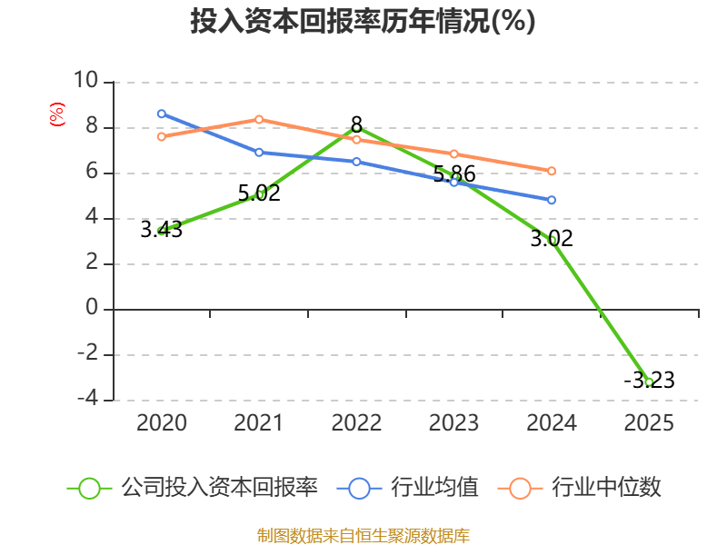 数据显示,2025年公司加权平均净资产收益率为-6.88%,较上年同期下降9.87个百分点。公司2025年投入资本回报率为-3.23%,较上年同期下降6.25个百分点。