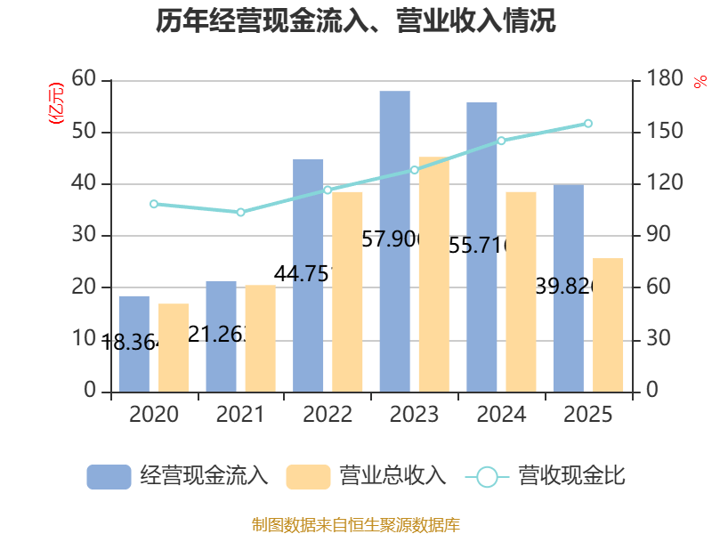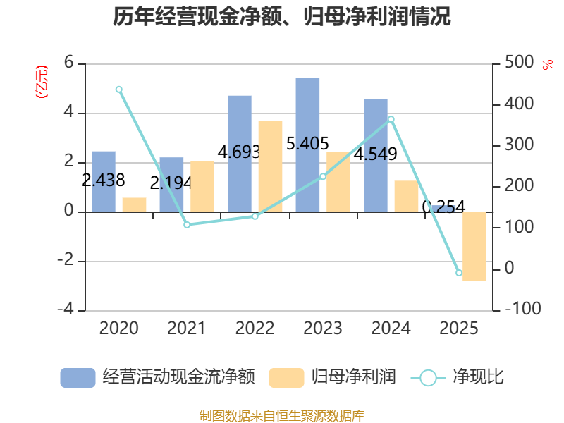 截至2025年,公司经营活动现金流净额为2539.96万元,同比下降94.42%;筹资活动现金流净额2.06亿元,同比增加4.88亿元;投资活动现金流净额-2.86亿元,上年同期为-2.66亿元。