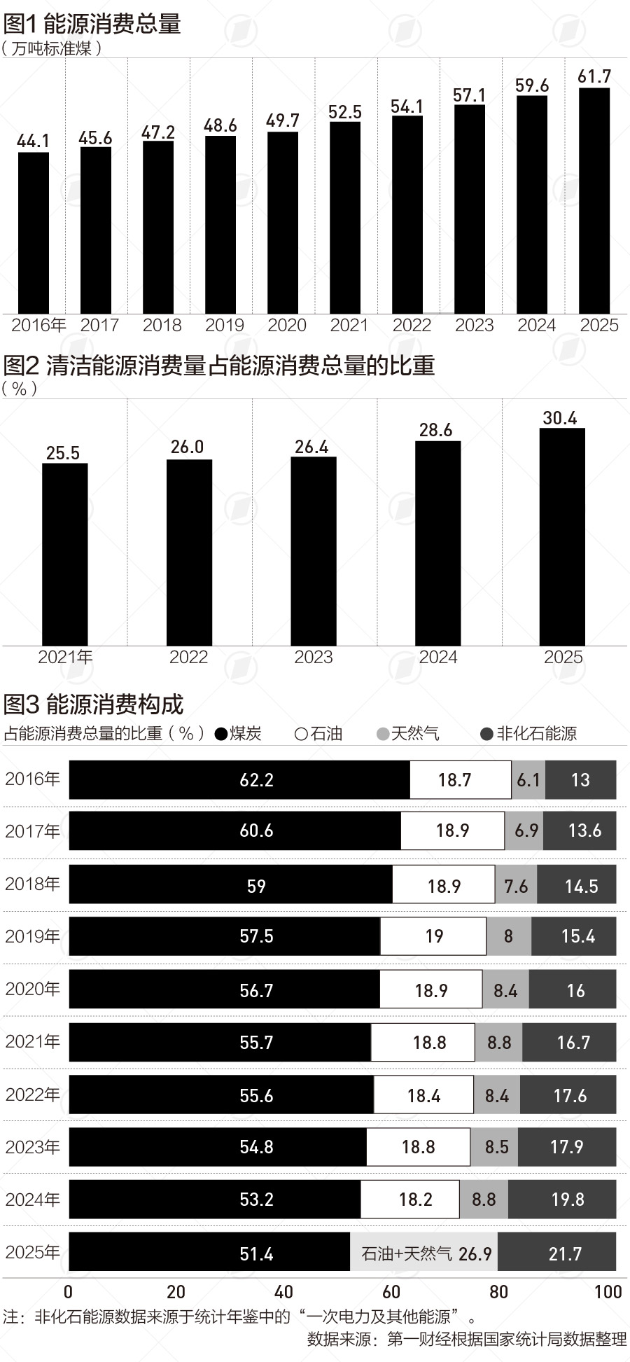 从能源消费角度看,根据“十五五”规划纲要,非化石能源占能源消费总量比重是“十五五”时期经济社会发展主要指标中的约束性指标之一。2025年非化石能源占能源消费总量比重为21.7%;到2030年,这一指标要达到25%。