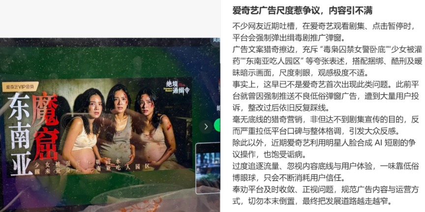 爱奇艺回应广告“猎奇擦边”:已第一时间下线