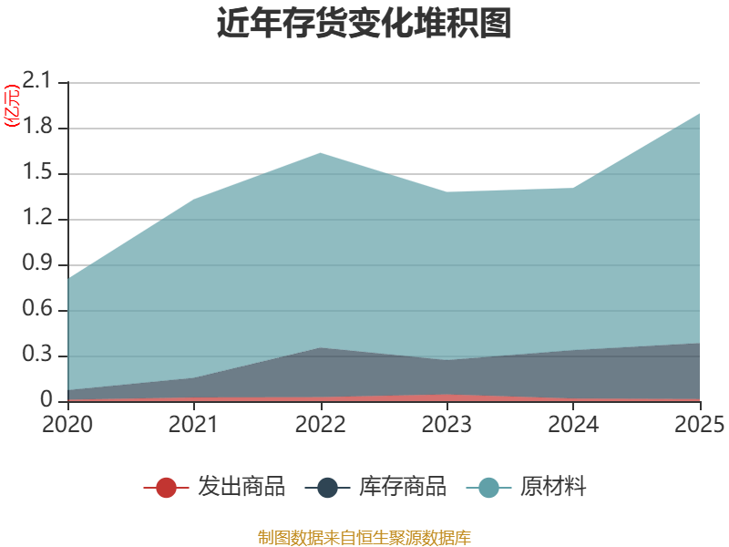 从存货变动来看,截至2025年末,公司存货账面价值为1.89亿元,占净资产的8.62%,较上年末增加4906.32万元。其中,存货跌价准备为786.03万元,计提比例为3.99%。